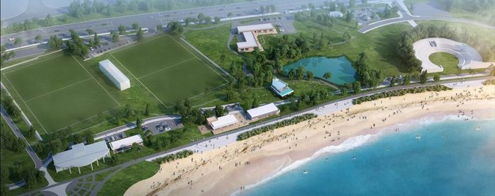 主な整備内容は、公園の対象エリアを三つにゾーニング(区画分け)した上で、新たに施設を建設する。国道58号側に地域の魅力を伝える複数の飲食店やショップを設置するほか、ビーチ周辺にはマリンアクティビティの拠点や眺めを楽しむことができるカフェやレストランを設置する予定となっている。
