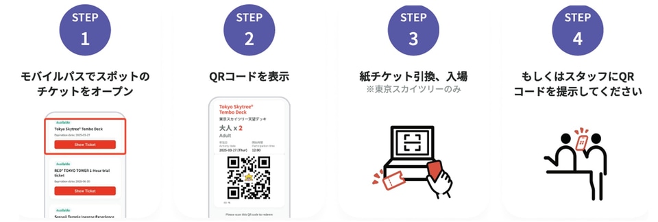 チケットはTokyo City PassのWebサイトと世界各国のオンライン旅行代理店で購入できる。