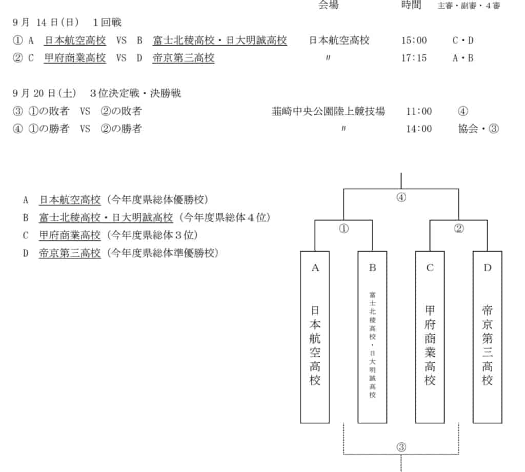 (1)ノックアウト方式により全日本選手権大会及び関東選手権大会に出場する代表校を決定する。