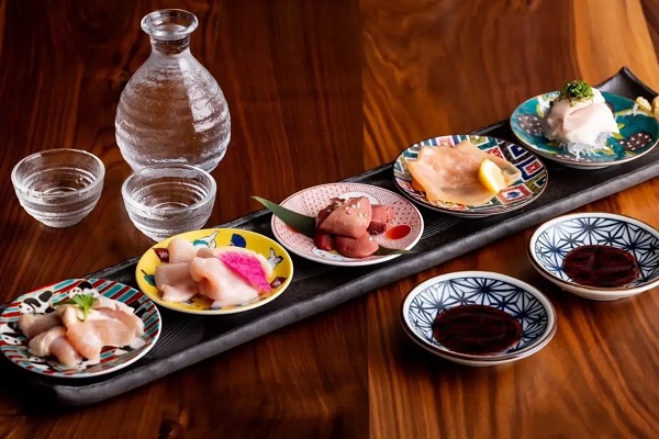 数量限定「国産赤鶏刺し5点盛り」1,868円(税込)は、新鮮な鶏のさまざまな部位を贅沢に味わえる人気の逸品。部位ごとに異なる食感や風味を楽しめる。