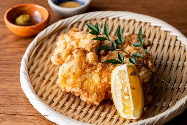 蕎麦屋ならではの特徴を活かした「蕎麦屋のから揚げ」1個218円(税込)は、蕎麦の出汁に漬け込んでから揚げることで旨味が鶏肉に染み込み、外はサクサク、ジューシーに仕上がるそう。