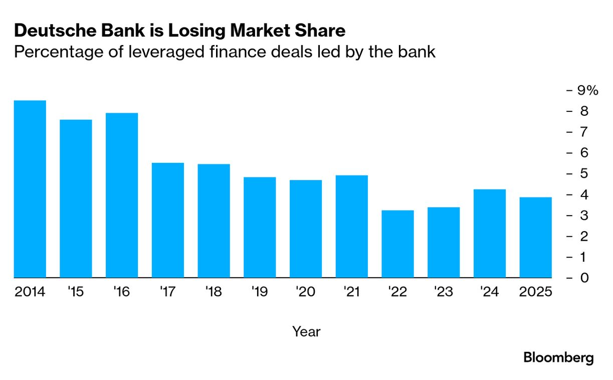 原題:Deutsche Bank Is Losing Its Edge in Leveraged Finance Deals(抜粋)