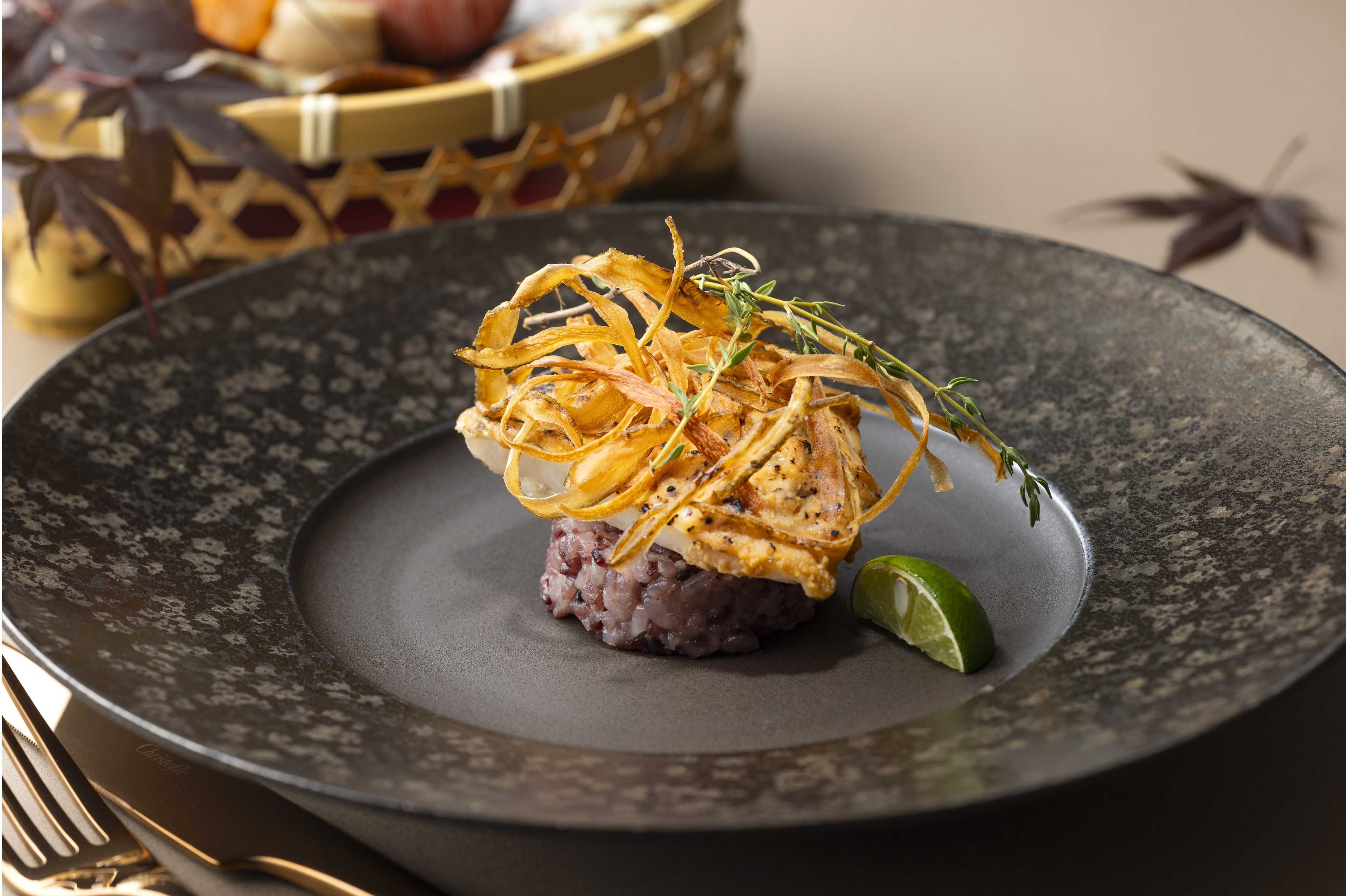 「今秋は茸×香りをテーマに、五感でお楽しみいただけるディナーコースをご用意いたしました。松茸やトリュフをはじめとする旬の茸が放つ芳醇な香りを軸に甲州ワインビーフや甲斐サーモンなど山梨県産の食材を組み合わせ、和と洋の技法を駆使して仕上げております。中でもおすすめは、地元の茸をふんだんに使用した『ほうとう鍋』。採れたての茸の旨みと香りを存分にご堪能いただける一品です。香りを閉じ込めた演出など、細部にまでこだわった秋の味わいをぜひごゆっくりとお楽しみください。」
