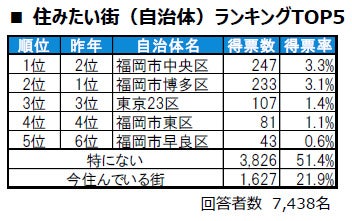 ■住みたい街(自治体)トップは、福岡市中央区