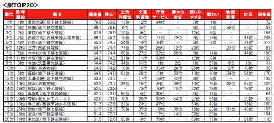 ※昨年の順位が「-」となっている駅は、昨年の累計回答者数が30名未満のためランキング集計対象外でした。