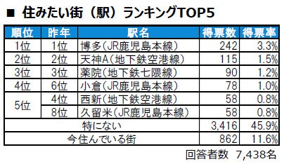 ■住みたい街(駅)トップは、7年連続で博多