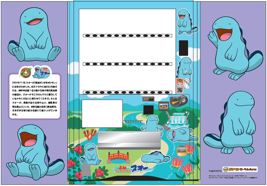 高知県は、8月1日から「高知だいすきポケモン」ヌオーの夏休み限定プレゼント企画を開催する。ヌオーがラッピングされた伊藤園の災害対応自販機も登場する。