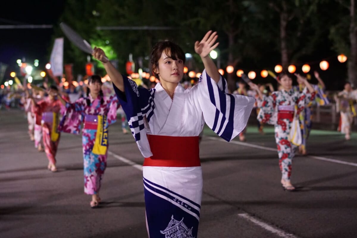 企業や学校、市民グループなどが10人以上で構成する踊りのチーム「連」を組み、思い思いの衣装で約5,000人が街を練り歩く「街頭踊り」と、誰でも参加できる「輪踊り」があります。