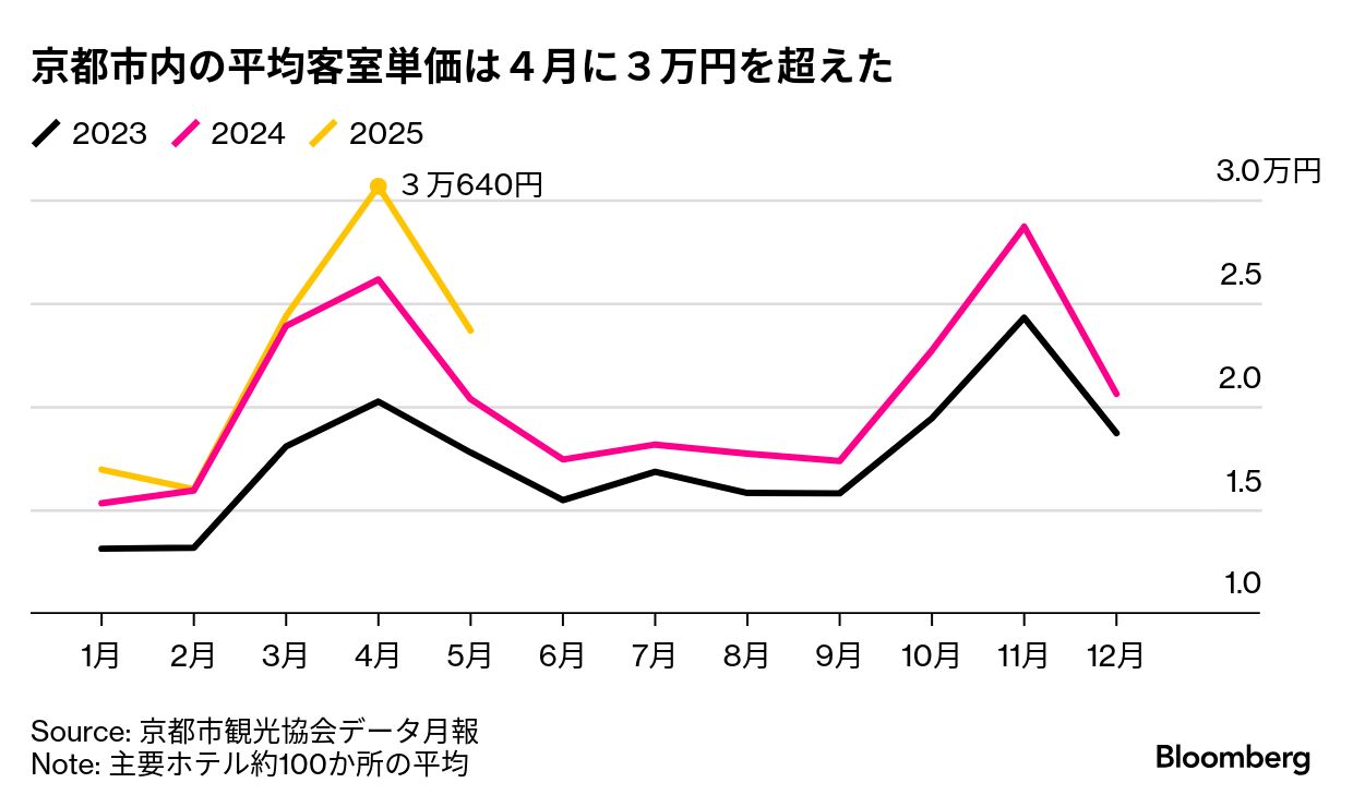 京都市内の平均客室単価はこの2年間で5割上昇し、今年4月には初めて3万円を超えた。ホテル評論家の滝沢信秋氏は、京都より宿泊料が安い奈良や、低予算から富裕層まであらゆる層に選択肢を提供している大阪が宿泊を伴う旅先として選ばれやすいと分析する。