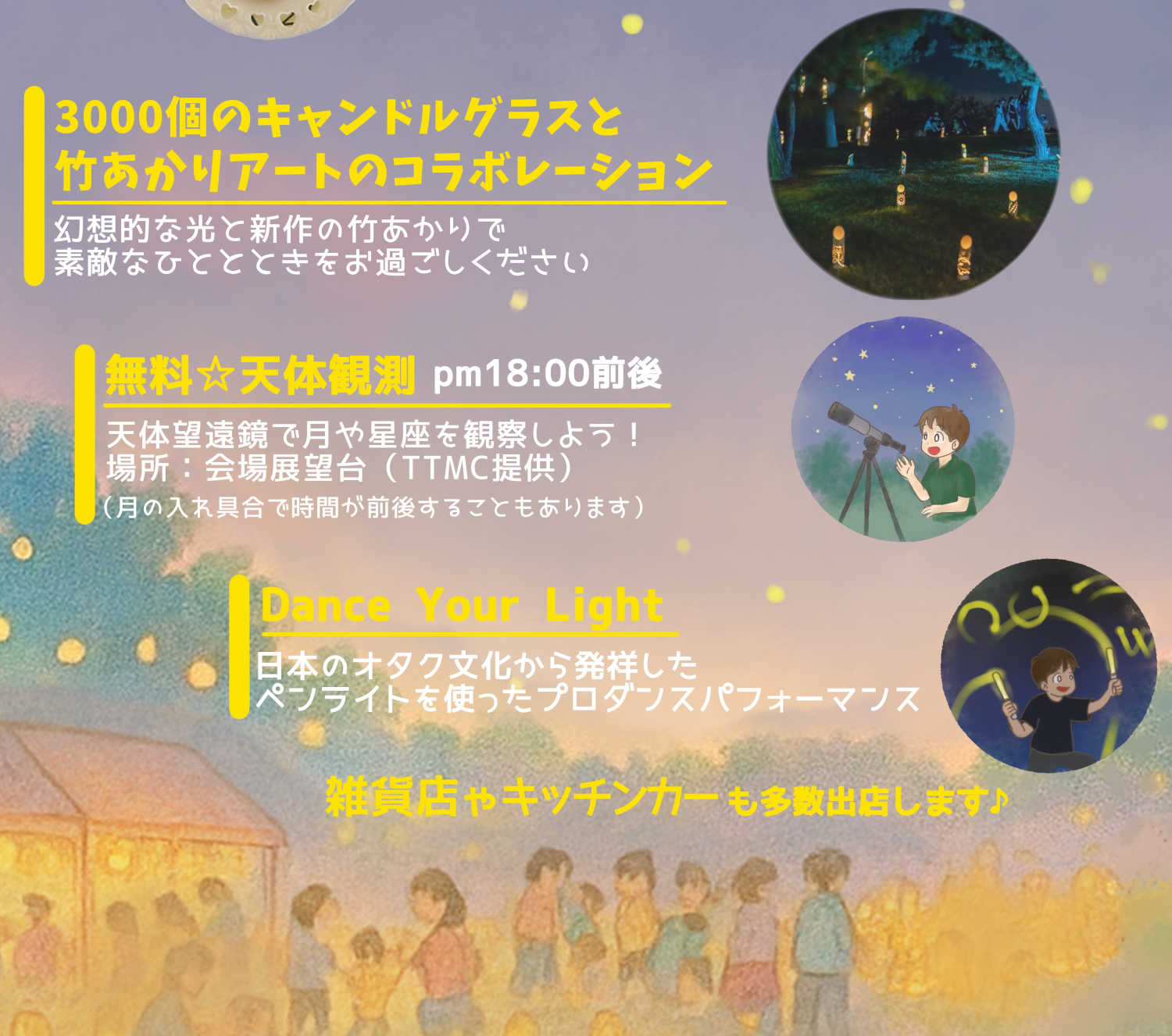 幻想的な光と新作の竹あかりで素敵なひとときをお過ごしください