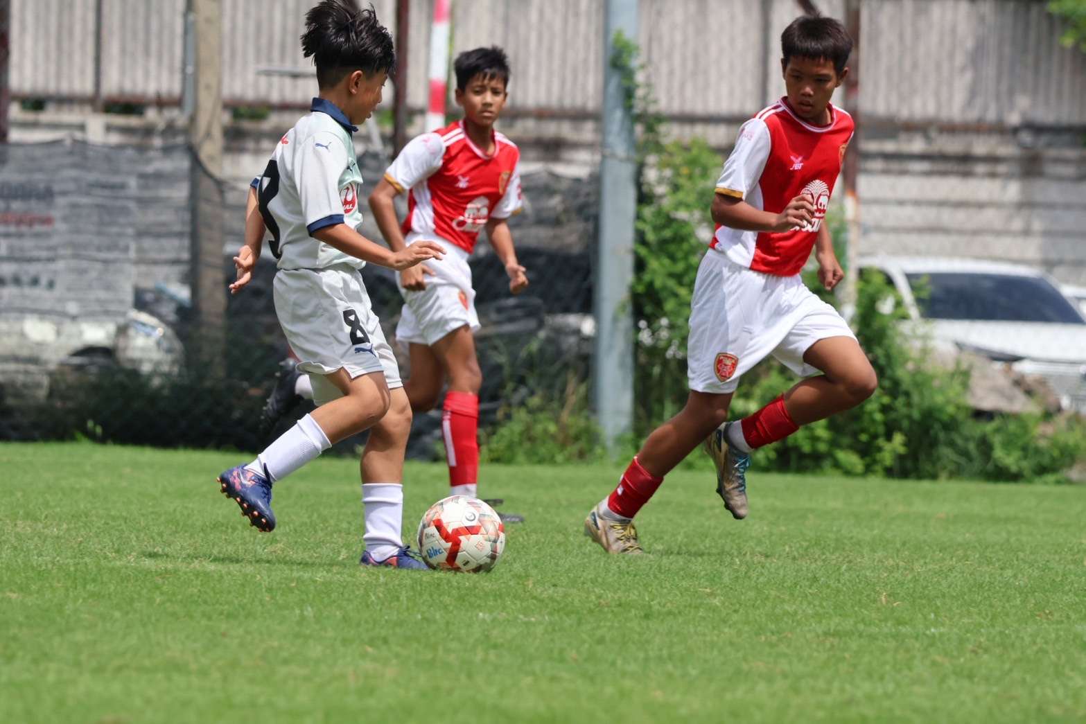 本遠征初戦の相手は、地元クラブ ポリス・テロFC。試合会場はホテルから約1時間の練習場で、朝の交通渋滞により試合開始 30分前 に到着するギリギリのスケジュールに。到着早々、まさに“海外”を実感できる環境の中でウォーミングアップを開始しました。